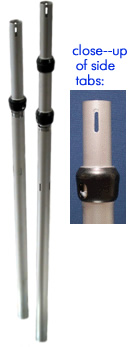 The spreaders or uprights can be standard size or telescopic. Both the standard and telescopic utilize a unique “slip fit” system which allows the upright to simply slip over a pin that is on the base.
