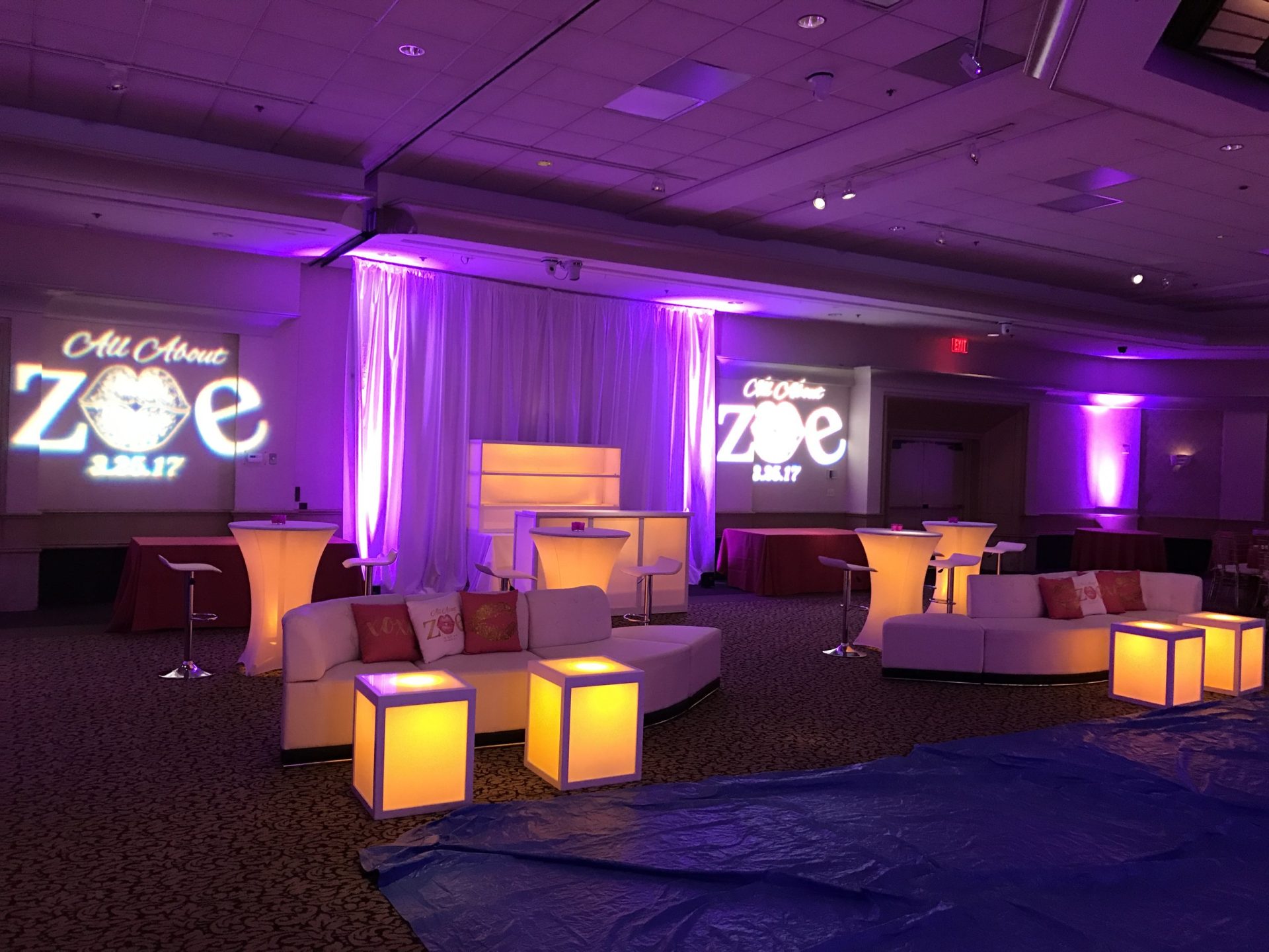 Pegasus has a variety of furniture for your event including leather furniture in black and white as well as curved furniture arrangements. Stools in black and white and a huge variety of light-up furniture.